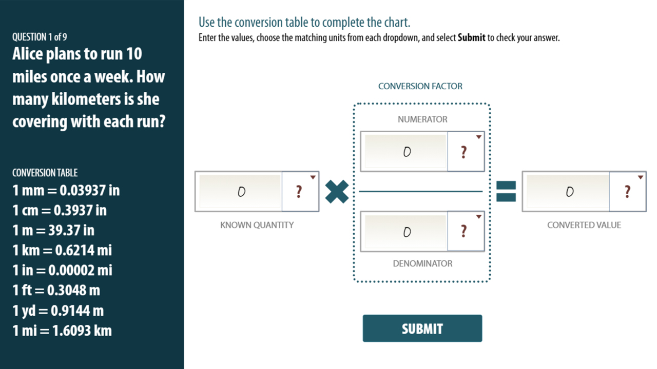 - Describe the process to perform a metric conversion